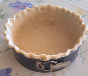 • Roll the dough on a floured surface and place in a 9-inch springform pan. Make a pretty edge.