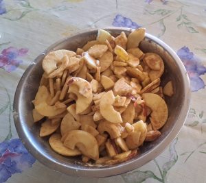 • Combine the peeled and sliced apples with the remaining filling ingredients and gently toss to combine. Make sure all of the apple slices are coated.