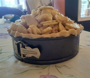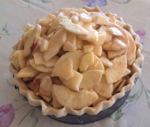 • Layer the apples tightly into the pie shell. They should be mounded high above the top of the springform pan.