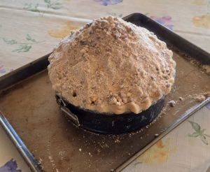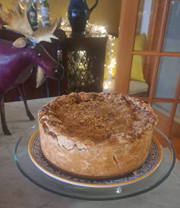 • Place the pie onto a rimmed baking sheet and bake in the center of the oven for 2 1/2 to 3 hours, until nicely browned and bubbling.